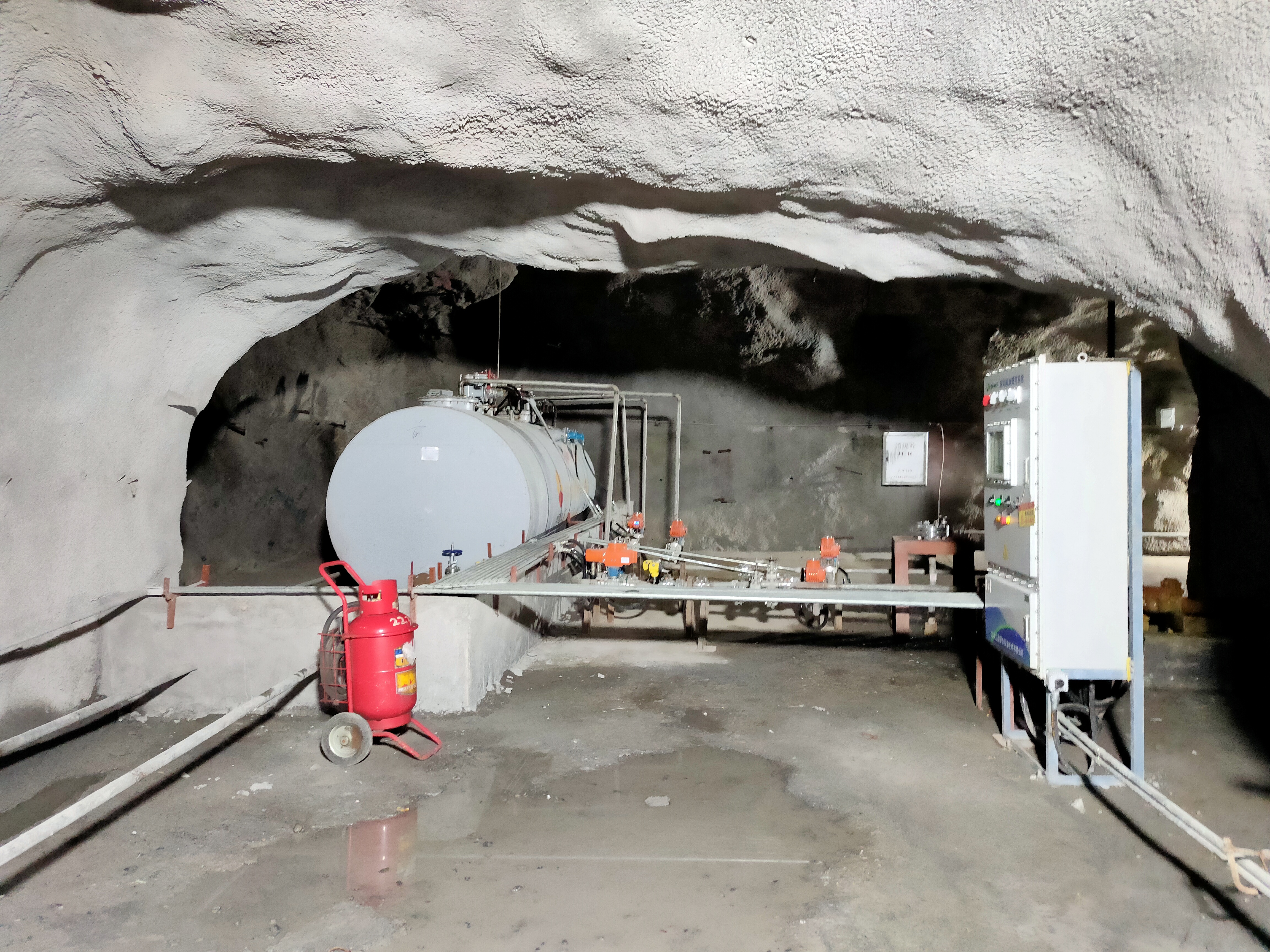 凡口鉛鋅礦井下680米智能供油系統 目前正有序施工中, 預計9月底完工并投入使用。該項目為全國首創, 由韶關企業進行技術攻堅 并申請多項國家專利, 擬申報吉尼斯世界紀錄 “全球最深的智能供油系統”。 凡口鉛鋅礦井下智能供油系統 需在地面設置橇裝加油裝置, 并分別在地下 330米、480米和680米處 建設智能化供油系統, 通過鉆孔鋪設輸油管線, 將油品從地面輸送到井下。 地下330米智能加油點, 目前已進入收尾階段, 現場有兩根 從地面裝置接下來的輸油管, 用于工程車加油, 另一邊也有兩根輸油管輸送到 地下480米和680米的智能加油點。 別看油管很細,鉆孔不大, 但施工難度并不小, 全長3千多米的輸油管, 垂直打孔偏差不能超過1米。 作為亞洲最大的 單體鉛鋅銀礦生產基地, 凡口鉛鋅礦 有井下工程車輛和設備100多臺, 井下用油量大。 井下智能化供油系統啟用后, 不僅解決井下用油安全、環保風險, 同時降低生產用油成本, 推進凡口鉛鋅礦建設智能化礦山, 實現“無人開采”。 如果鉆孔偏差太大,就找不到鉆下來的孔,影響輸油管道的布設,增大成本。3千多米有5千多個焊接點,所有的焊接口都要達到高壓管道的焊接要求,這個項目是全國首創,在全國所有礦山企業中,我們是首次使用通過輸油管道往井下輸油,并且實現智能控制的方案。 這個月底把地下330米加油點完工,開始加油,9月底把底下480米和680米開通使用。希望通過這個項目打造創新科技的韶關樣板,把先進的經驗和技術推廣到全省、全國乃至全球。